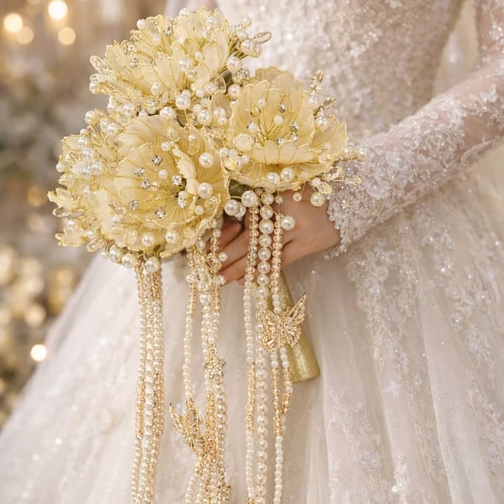 Luxury Gold Peony Pearl Bridal Hand Bouquet